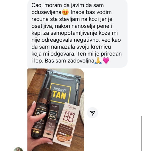 Kombinovanjem skin pene i natural bronze skin seruma postižete potpun izgled preplanule kože koji se savršeno uklapa sa zdravljem i negom kože.